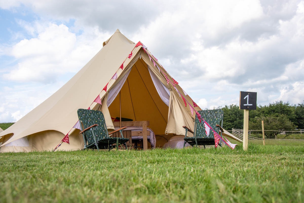 A luxury glamping bell tent in a pop-up ‘festival’ like village. -