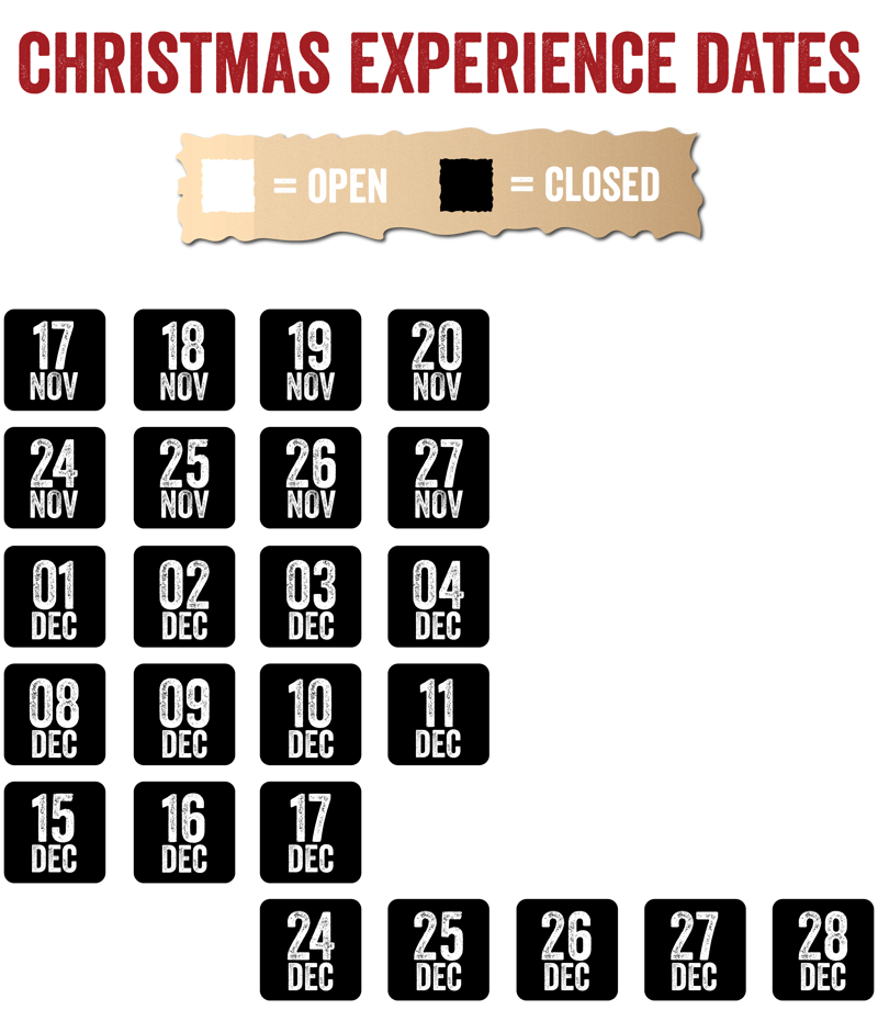 Please note: All Father Christmas Experience ticket holders have access to the Farm Park and the activities included within your ticket from 9:30am. The Farm Park will close at 3pm, so please arrive in time to complete the activities!